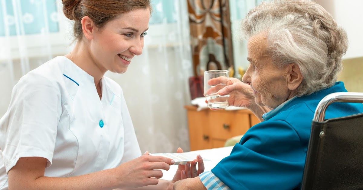 Thuisverpleegster Annelies Maes helpt de patiënt met de inname van medicatie. Het spreekt voor zich dat het ontzettend belangrijk is om de voorgeschreven dosis en het tijdstip van inname te respecteren.